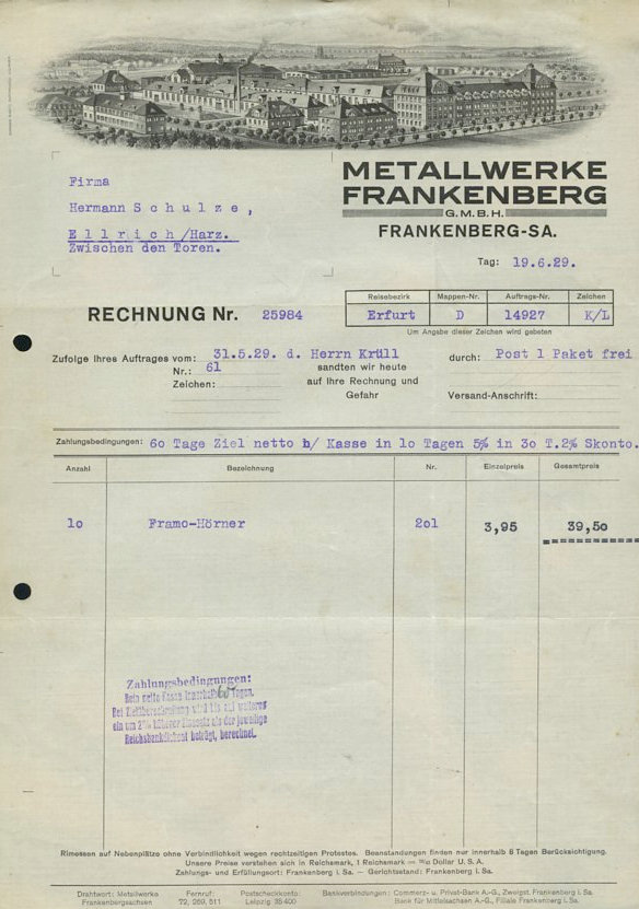 Framo Rechnung von 1929