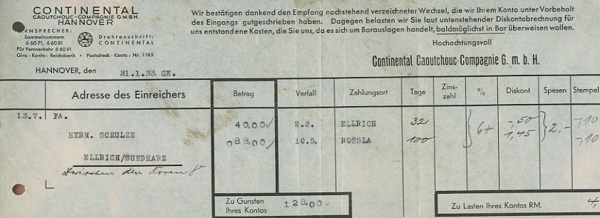 Continental Hannover Wechsel 1933