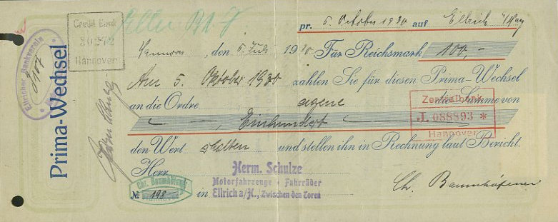Chr. Baumhöfener, Hannover Prima-Wechsel 1930