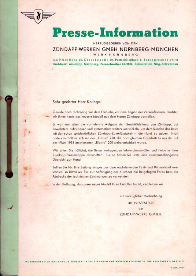 9 Seiten DinA4 Vorstellung Elastic 250 Leichte Gebrauchsspuren