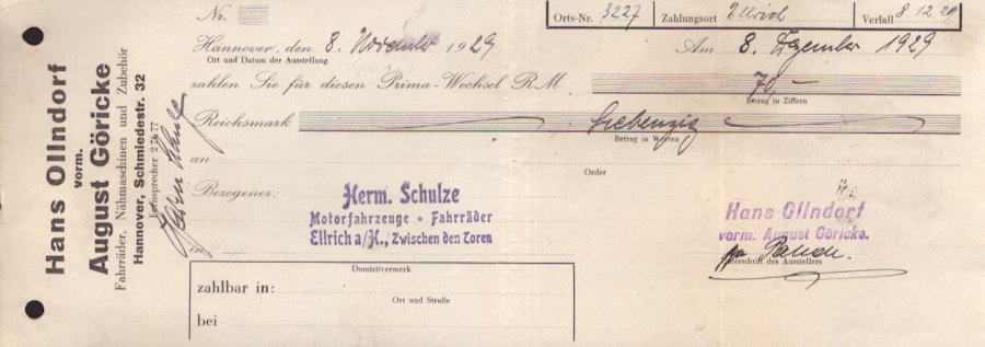 Hans Ollndorf Hannover Wechsel 1929