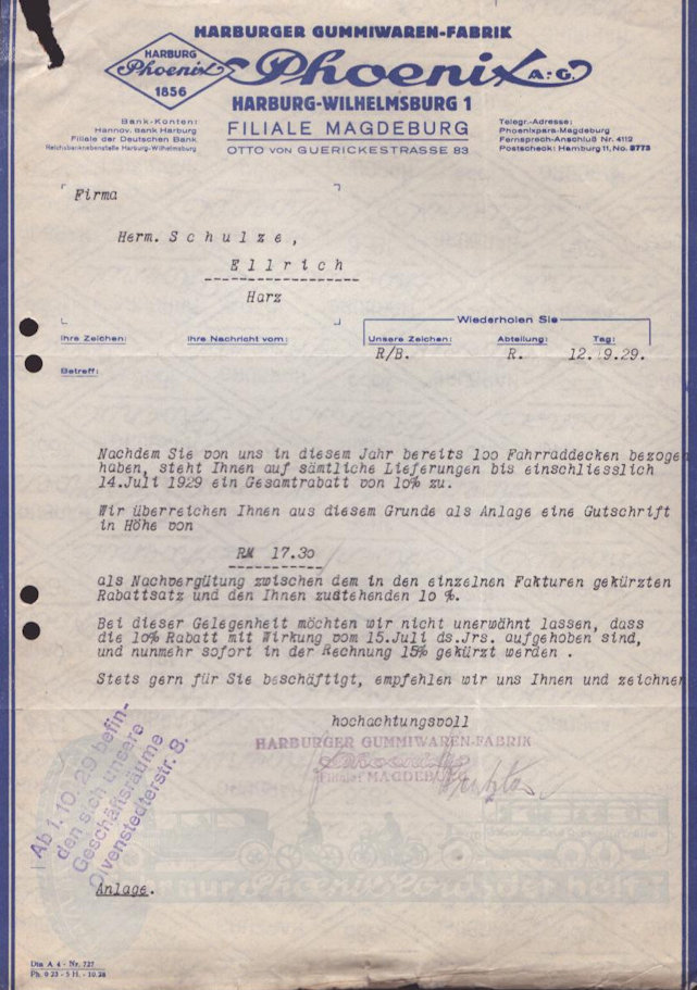 Harburger Gummiwaren-Fabrik Phoenix Rechnung 1929