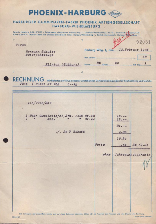 Harburger Gummiwaren-Fabrik Phoenix Rechnung 1936
