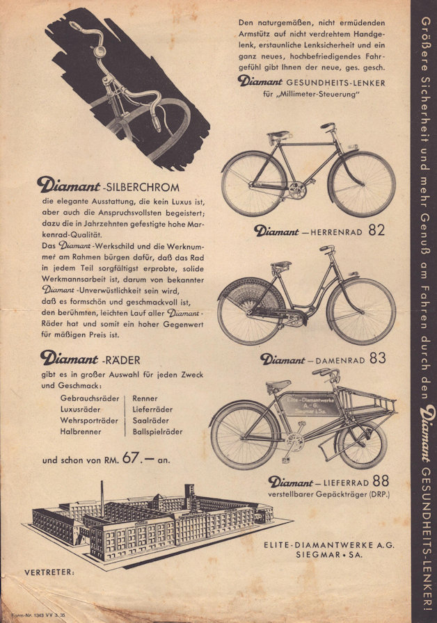 Diamant Silber-Chrom Fahrrad Prospekt 1935