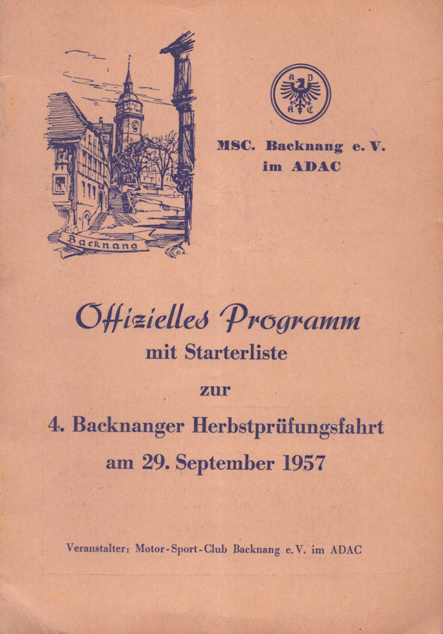 Programm Backnanger Herbstprüfungsfahrt 29.9.1957