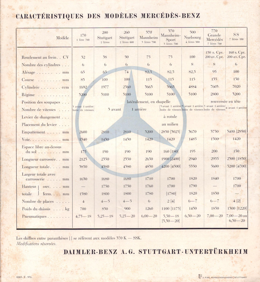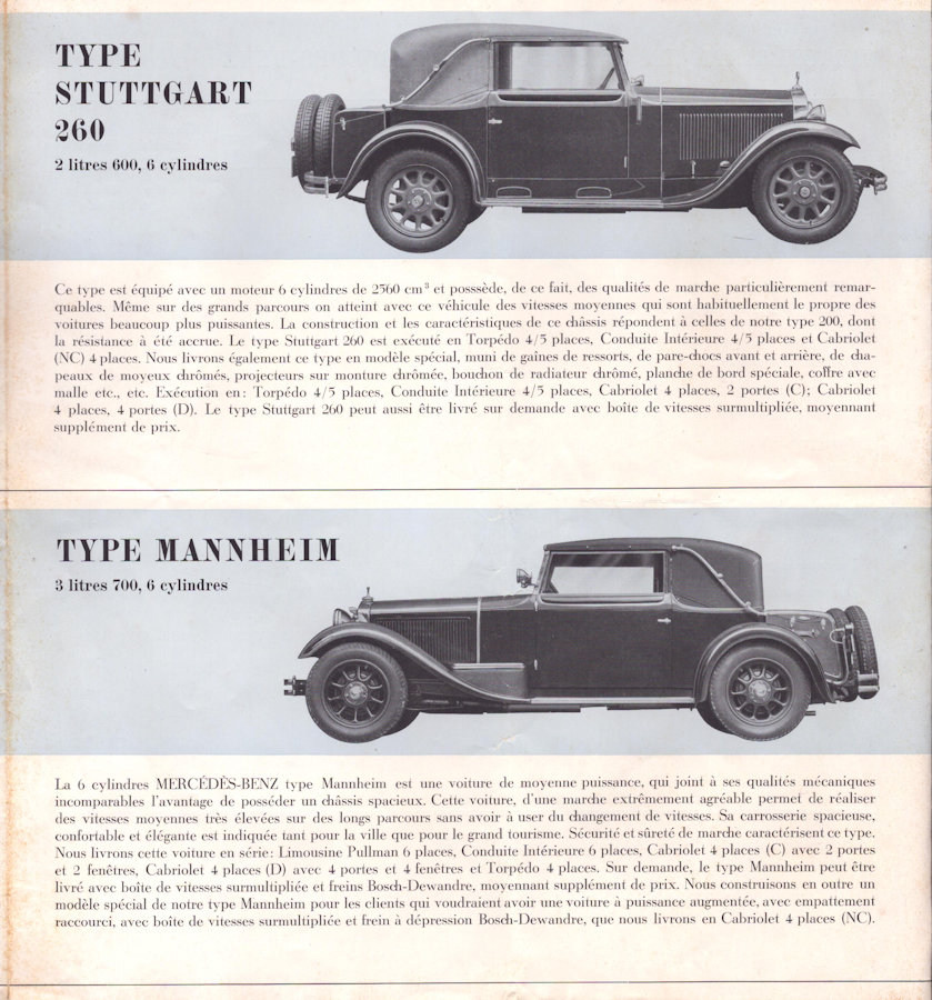Typ 170, 200 Stuttgart, 260 Stuttgart, 370 Mannheim, 370 Mannheim Sport, 500 Nürburg, 770 Grosser Mercedes und Typ SS