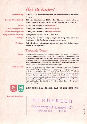 Mobile Preview: Gritzner Brummi Moped Prospekt 1953