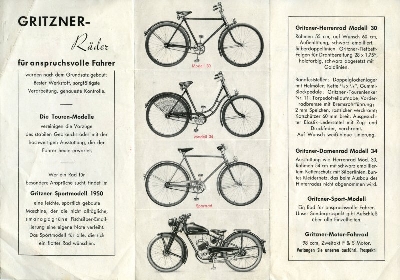 Gritzner Fahrrad und Motor-Fahrrad Prospekt 1950