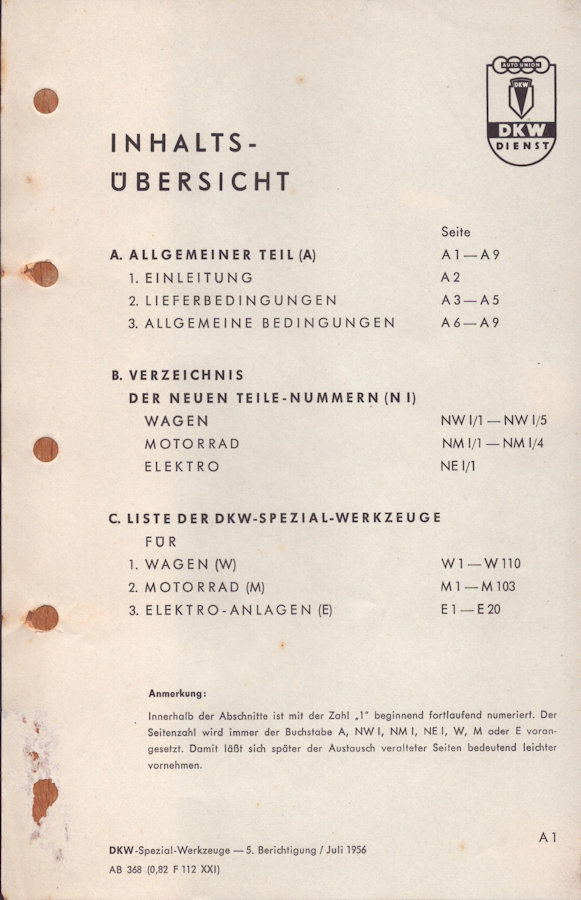 Dazu: 5. Berichtigung und Ergänzung des DKW Spezil-Werkzeuge Kataloges Nr.77
