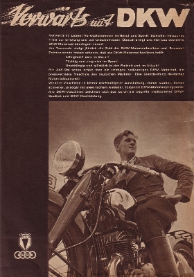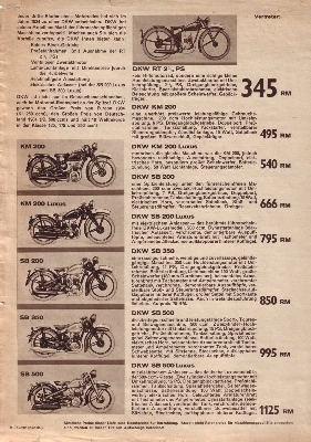 RT 2 ½, KM 200, KM 200 Luxus, SB 200, SB 200 Luxus mit Anlasser, SB 350 und SB 500 Luxus mit Anlasser „Vorwärts auf DKW“