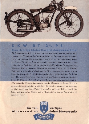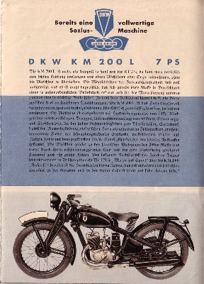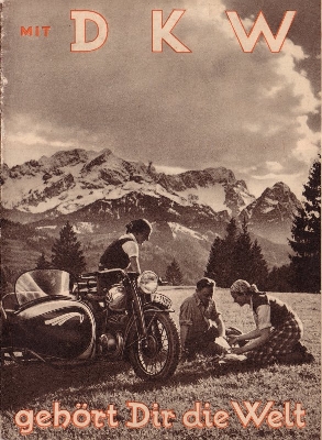 RT 2 ½, KM 200 Luxus, SB 200, SB 200 Luxus mit Anlasser, Sport 250, SB 350, SB 500 und SB 500 Luxus mit Anlasser „Mit DKW gehört Dir die Welt“